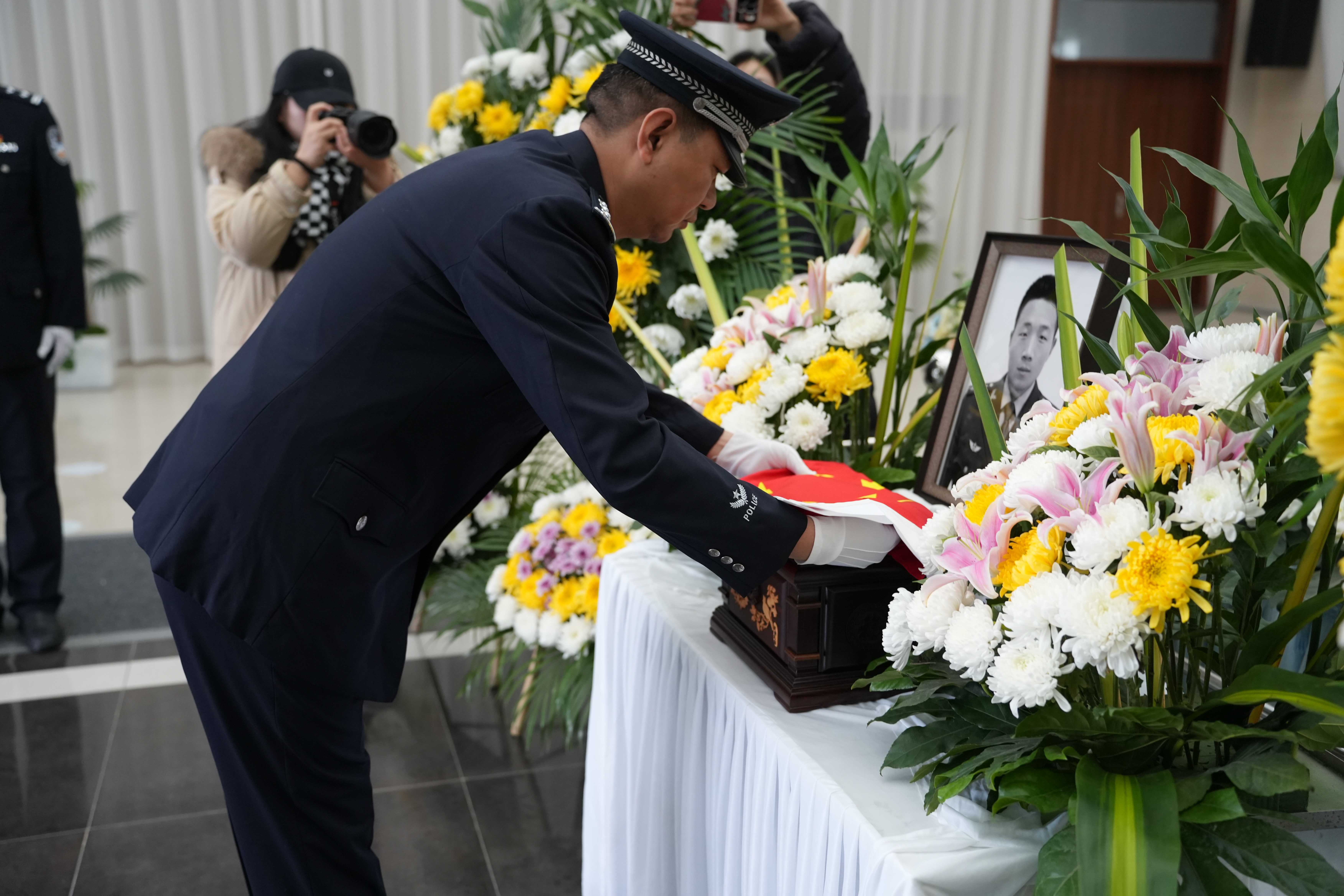 清晨的怀远县殡仪馆,气氛庄严肃穆。8时20分,工作人员为烈士骨灰盒覆盖国旗,全体人员奏唱国歌,向邵瑞烈士默哀。随后,礼兵双手郑重捧起覆盖着国旗的烈士骨灰盒,缓步登上灵车。