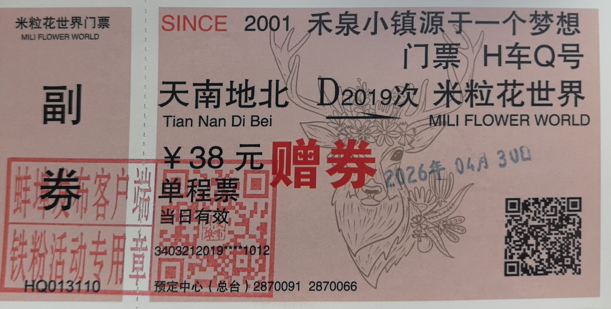 可得禾泉米粒花世界门票一张