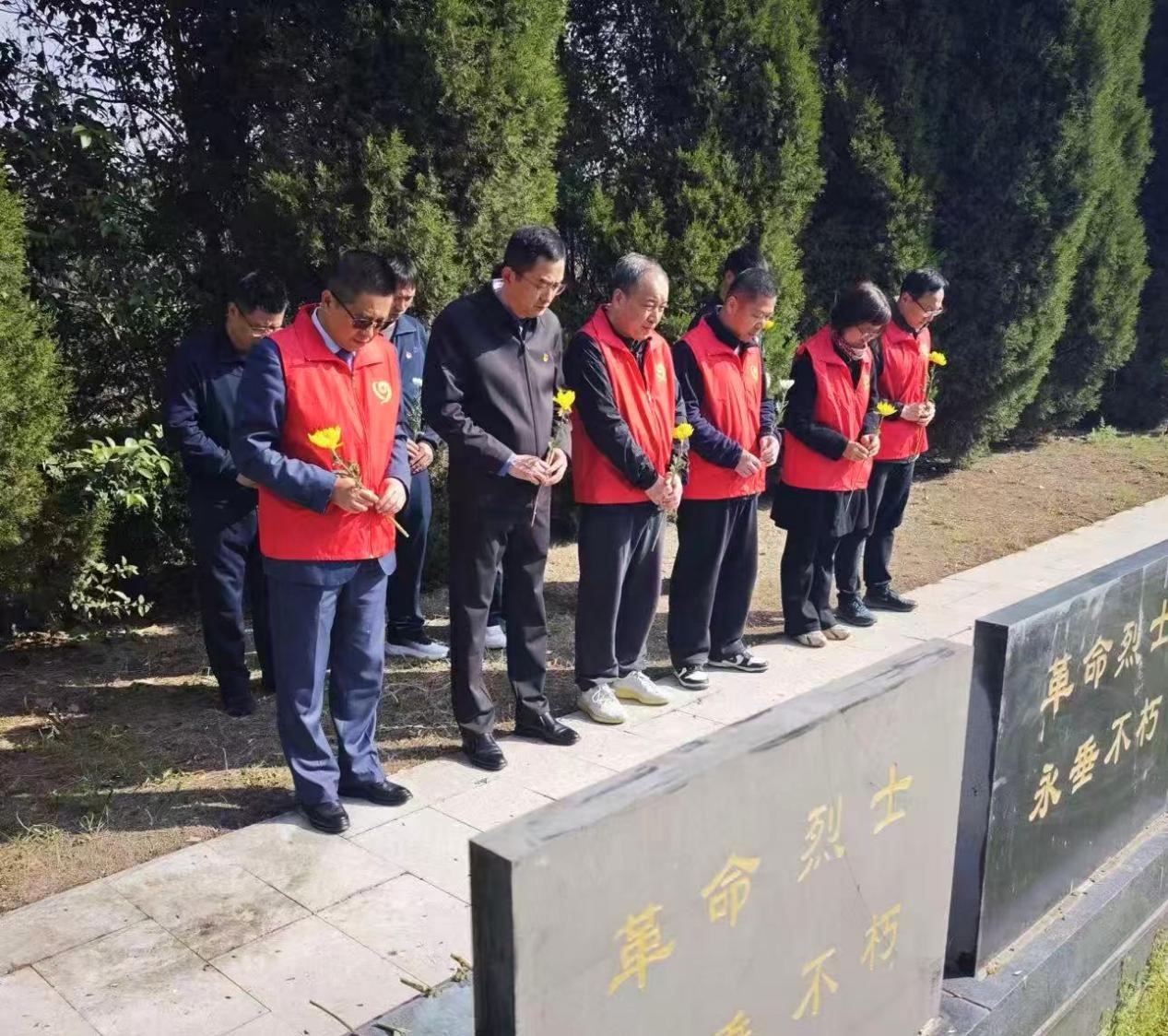 祭扫人员擦拭烈士纪念碑,清理园区周边环境,以质朴的行动表达对英烈的崇敬之情。9点30分,全体参与人员整齐列队,神情肃穆,向先烈默哀3分钟,表达深刻的哀思与崇高的敬意。默哀毕,大家缓步走向烈士墓,瞻仰烈士英名,敬献鲜花,寄托对先烈的无限追思。