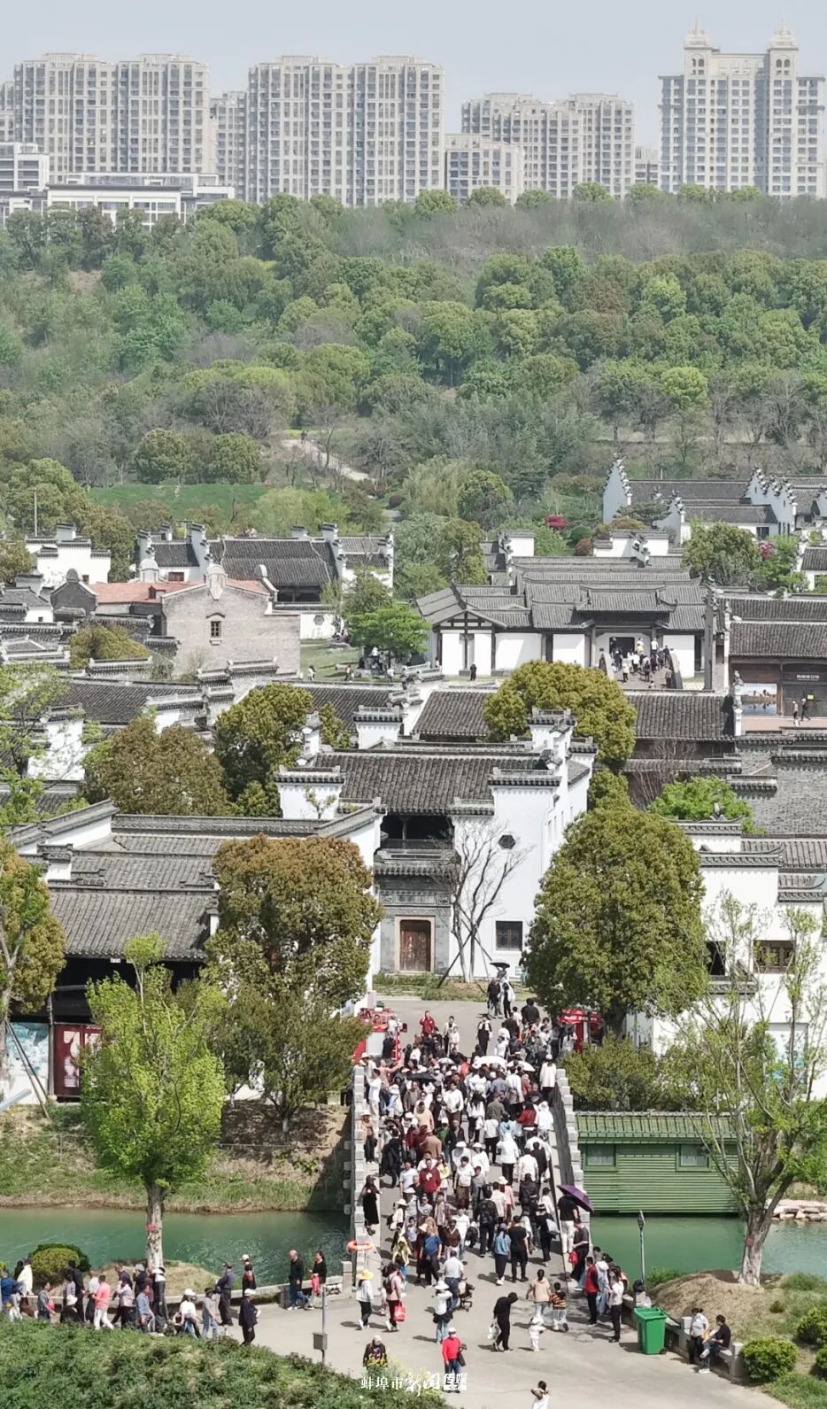 走进湖上升明月,春日的蓬勃生机与古建的厚重底蕴撞了个满怀。这里汇聚了从安徽、浙江、江西、福建等省市精心抢救修复的450栋明清古建筑,每一栋都承载着岁月印记与匠人匠心。步入园内,飞檐翘角的古民居临湖而立,倒影映入澄澈湖面,微风轻拂,水面泛起层层涟漪,与岸边抽芽吐绿的垂柳、肆意盛放的春花相映成画,宛若一幅徐徐展开的江南水墨长卷。湖畔草坪绿意葱茏,游客们或携家带口缓步赏景,或驻足古建前定格美好瞬间,或沿着湖岸悠然漫步,处处洋溢着惬意温馨的文旅氛围,尽显民生文旅的温暖底色。