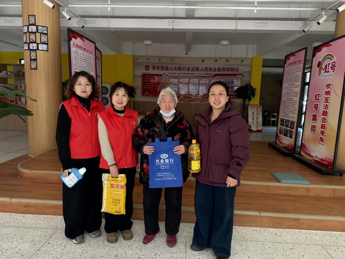 活动现场还设置了“一对一”金融咨询台,志愿者们为老人解答手机银行使用、存款产品选择等问题,以专业能力筑牢老年群体资金安全的“防护墙”。 此外,志愿者们还走访慰问社区困难独居老人家庭,送去米、油等慰问品,与老人拉家常、问需求,叮嘱老人注意冬季保暖,有问题随时联系社区或银行,让老人们在寒冬中真切感受到来自兴业银行的关怀与温暖。
