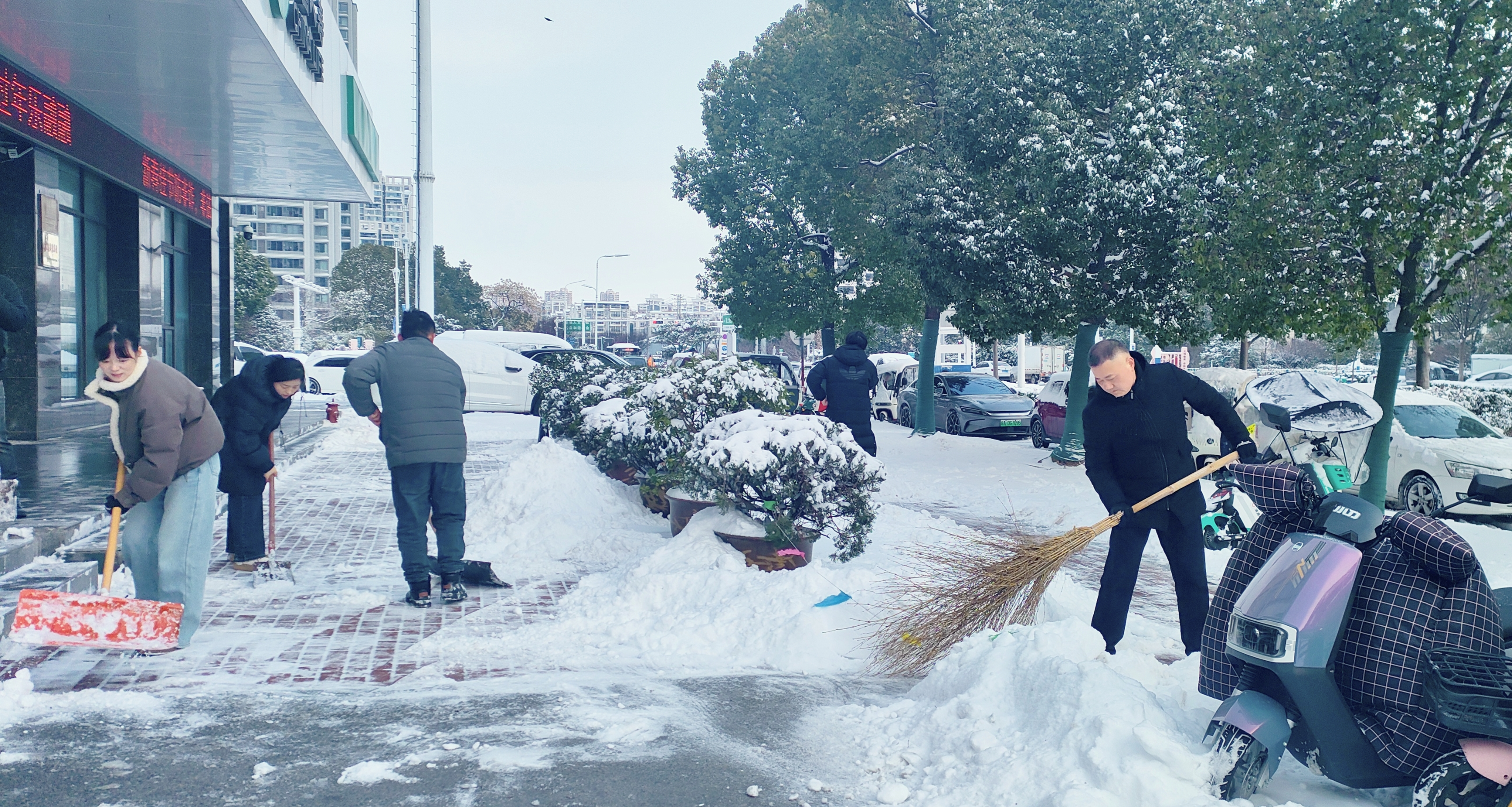 回程时雪势愈猛,交通几近瘫痪。为不影响后续工作,刘萌萌携带资料,风雪中徒步返回公司。面对同事们关切的目光,她只是微笑说道:“业务办妥了,没耽误客户,很值得。” “我为群众办实事” 近日,安徽阜阳遭遇持续降雪天气。中国人寿阜阳分公司办公区域、客户服务大厅周边及责任路段铺满了厚厚的积雪,给市民通行带来极大不便,也为前来办理业务的客户产生安全隐患。为切实保障群众出行安全与办公秩序顺畅,该公司干部员工迅速开展义务清雪行动。大家不畏严寒、分工协作,铲的铲、扫的扫、推的推,默契配合形成高效清雪流水线。凛冽寒风中,忙碌的身影勾勒出冬日里一道温暖的风景线。