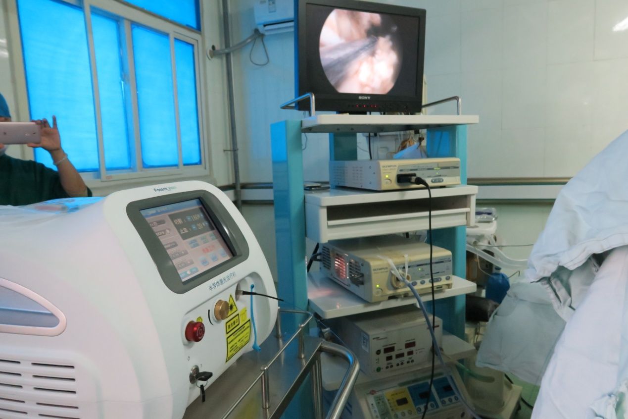 两名患者均在8月初就诊,要求手术治疗,由马坦途主治医师接诊。收住入院后,在副主任医师姜雷的带领和指导下,马坦途、黄俊兰、邵文光等治疗组医生对患者进行仔细的术前检查、诊断和病情分析评估,排除手术禁忌后,决定选择“经尿道前列腺红激光剜除术”对两名患者进行手术治疗。