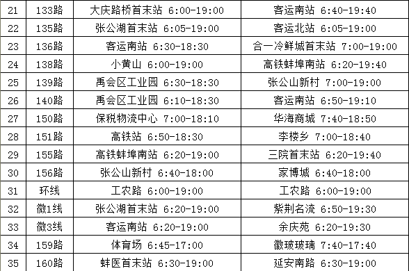 市公交集团发布了部分公交线路运营时间调整表。蚌埠日报全媒体记者 何沛