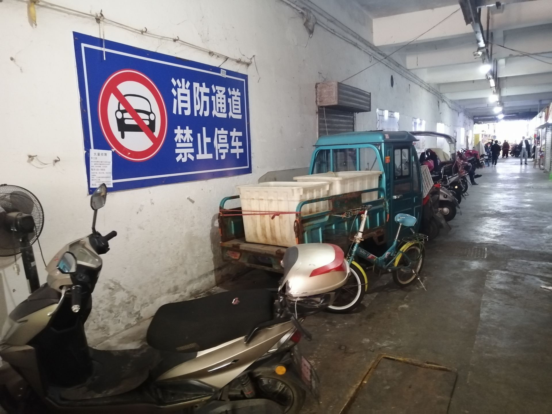 新天地菜场通道停车。