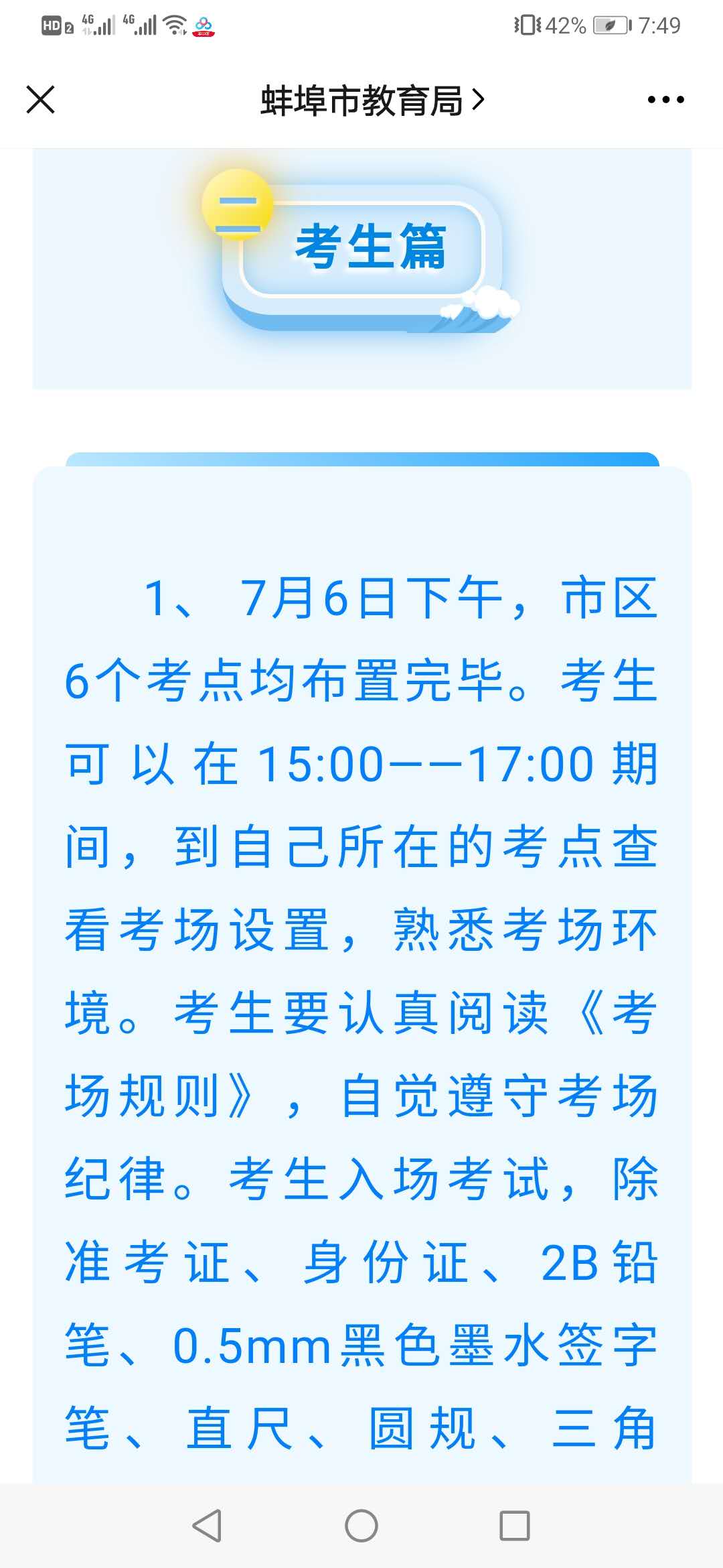 高考在即,市教育局提醒考生注意做好个人防护,按时抵达考场,考出最好水平。蚌埠日报全媒体记者 靳瑾
