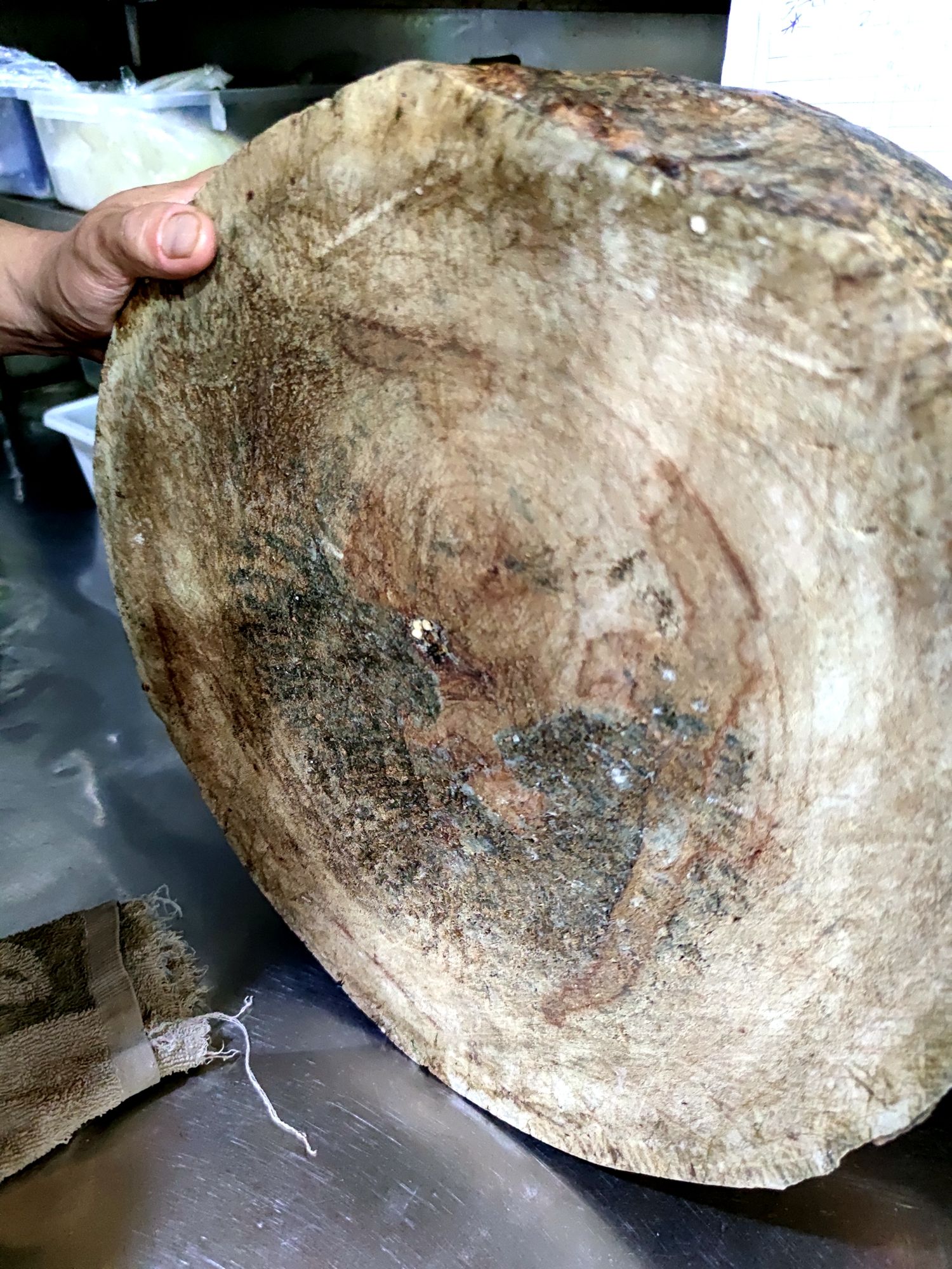 随后,督查组人员来到饭店后堂,后堂面积很小,过道逼仄仅容一人通过。门口处,纸箱内装着垃圾等废品,吊在一旁的蛇皮袋内装了一麻袋空瓶子。冰柜内,生熟混放,储存的食品用带颜色的塑料袋盛放。一只黑色大蟑螂在墙面上爬动,后堂油污厚重。督查中发现,该饭店后堂洗涤池虽区分了荤菜池、素菜池、洗碗池,但未设置相应标签标识;洗涤池下方未安装下水管道,一只沾满腌臜污渍的筐子用于过滤洗涤池油污残渣。拐角处,绿色垃圾桶沾满油污,桶身用胶带黏住以防散架。督查组人员翻开菜板发现,背面已经长出绿色霉菌。消毒柜里放着个人物品成为“储物柜”,苍蝇拍随意放在餐具旁,水桶内有蟑螂在爬动。与外界相通的门有帘子,但灭蝇灯灰尘未及时清理。