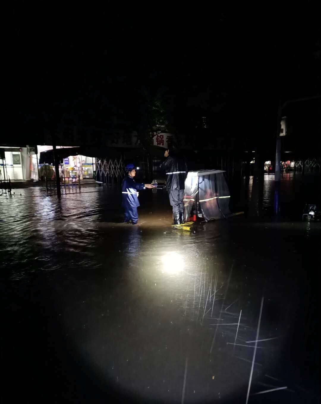 8月9日凌晨,国网蚌埠供电公司城东供电服务部工作人员在新淮路冒雨抢修。蚌埠日报全媒体记者 何沛 通讯员 张满