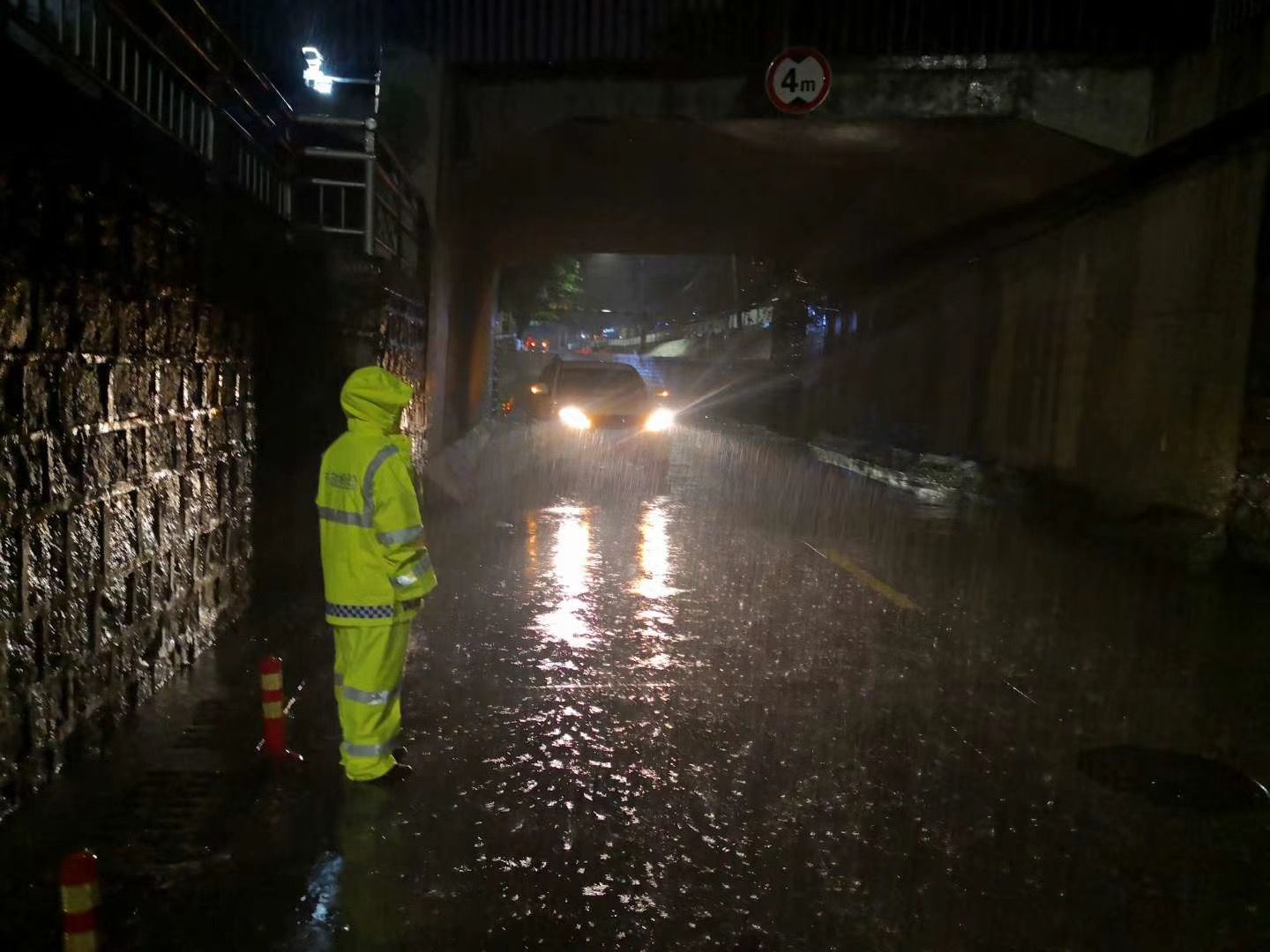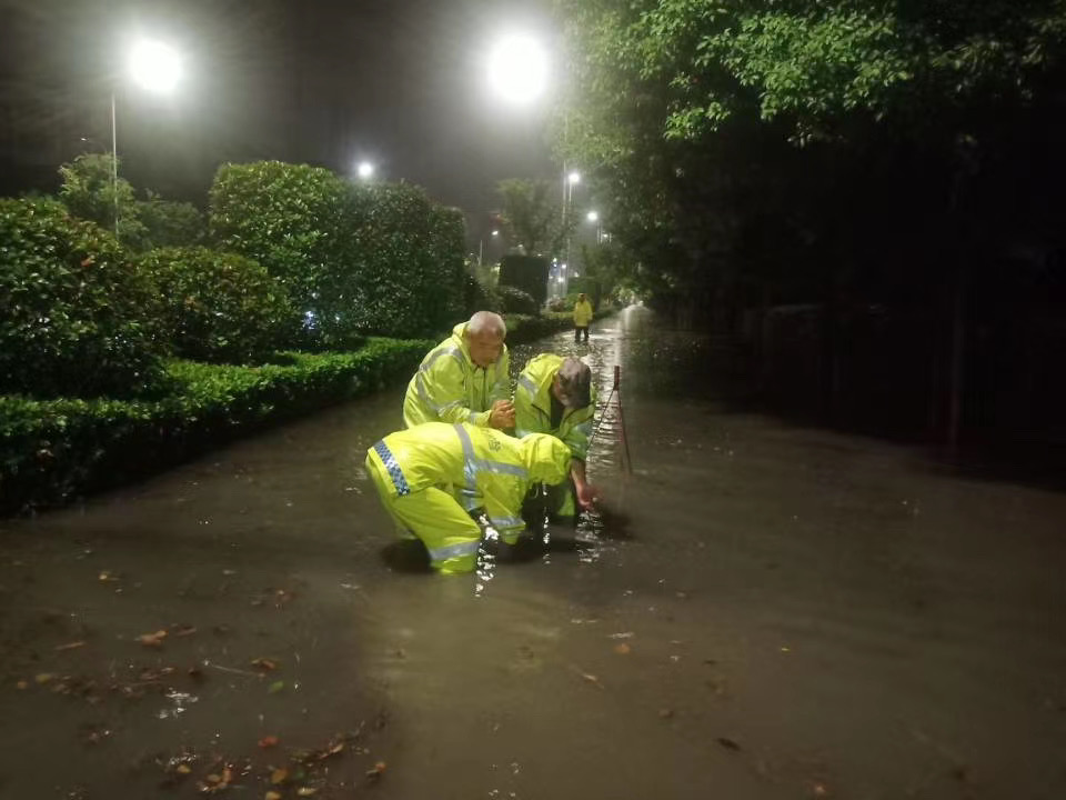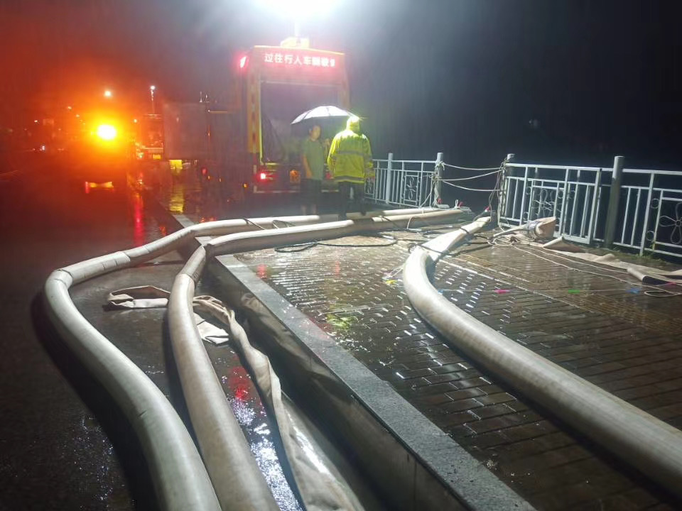 市政部门连夜组织人员对积水路段进行排涝