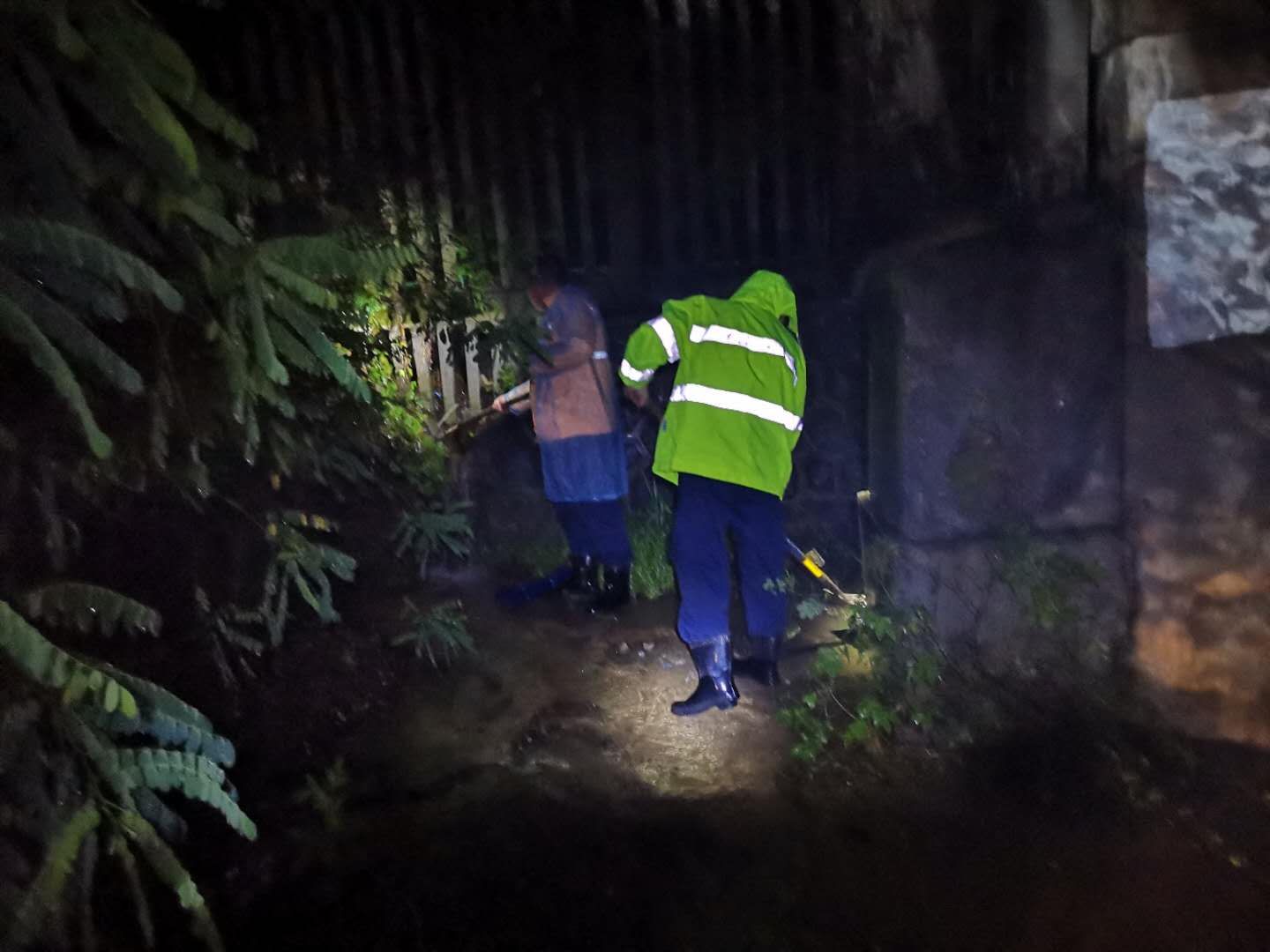 蚌埠工务段职工冒雨出巡铁路防洪重点地段