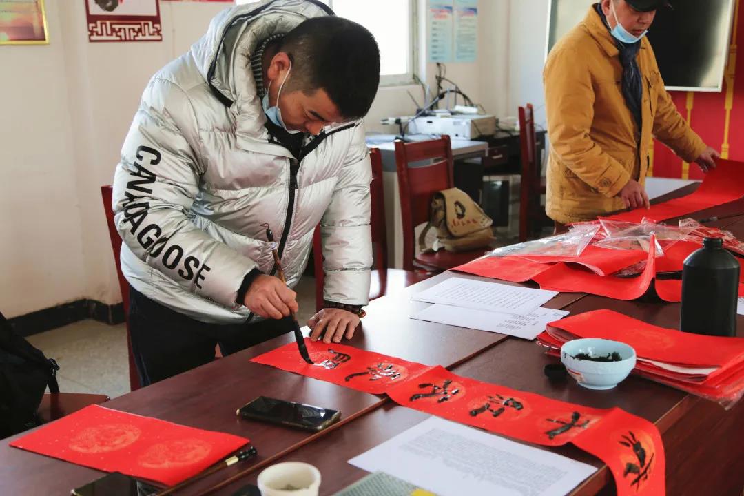 “盛世千家乐 新春百业兴”“大地人间暖 神州喜临门”不一会儿,一幅幅寄托新春祝福的春联和造型各异的“福”字便送到了乡亲们的手中,会议室里一派欢乐喜庆的浓浓年味儿。