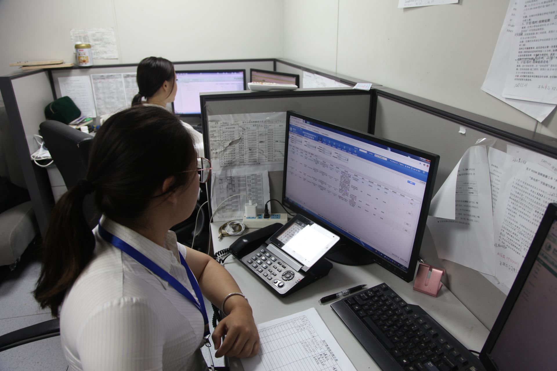 10月1日上午9时,国网五河县供电公司客服人员认真处理业务工单。(李振玉)