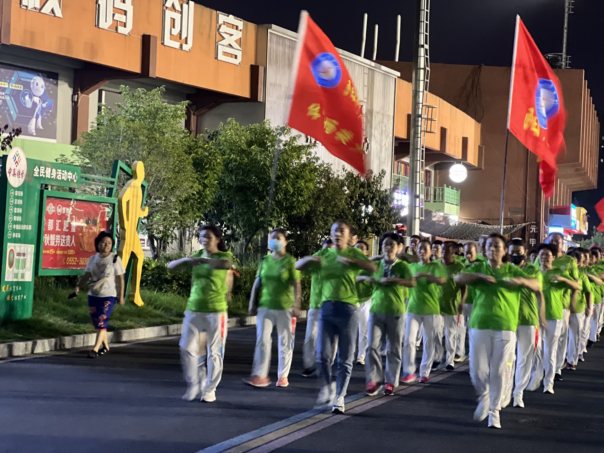 晚上7点,在市民广场、淮河文化广场等地,少则十几人、多达上百人的健步走队伍,开始围绕广场健身,每个队伍都身着统一的服装、喊着统一的口号、迈着统一的步伐,场面壮观。