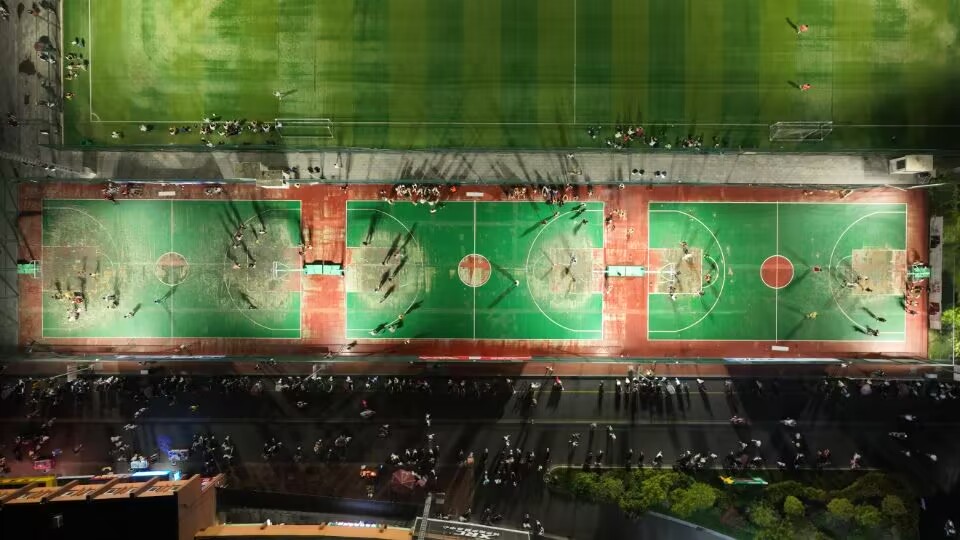 篮球场地吸引不少年轻人 融媒体记者 陈昂 摄