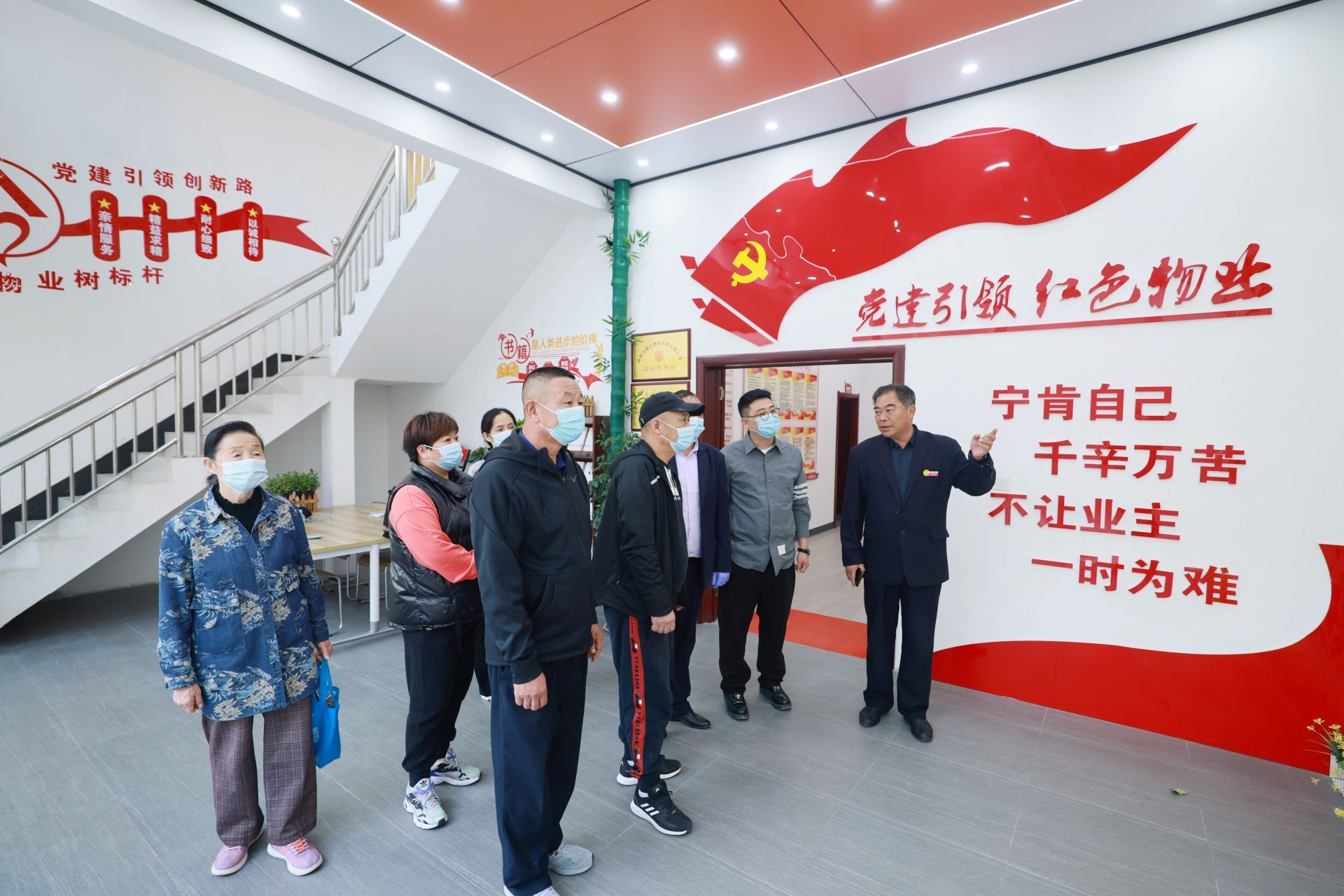 在戴湖翠微园南区,物业人员向居民介绍红色物业建设情况。