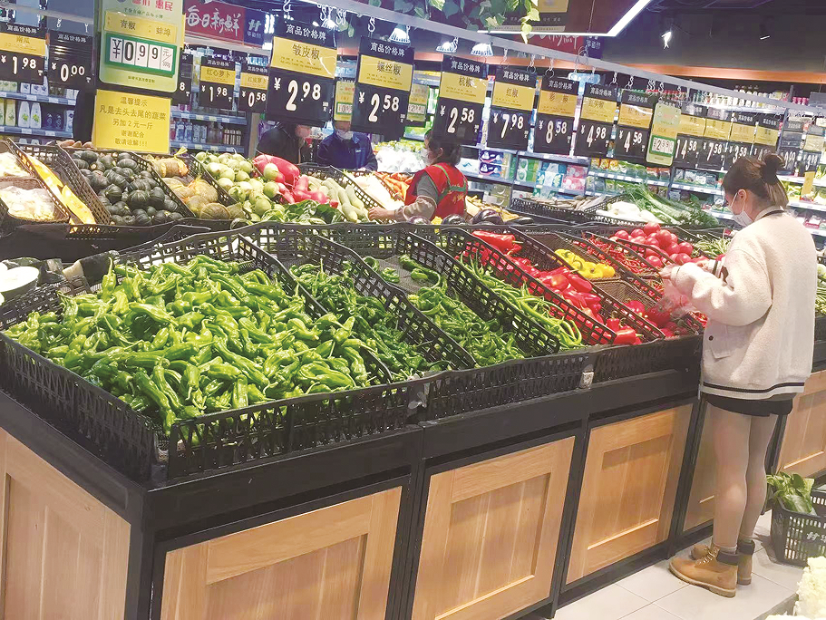 市民正在超市内选购蔬菜