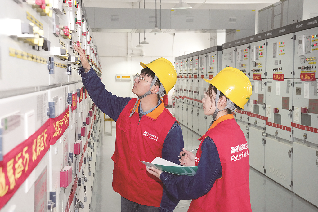 供电人员正在巡查设备