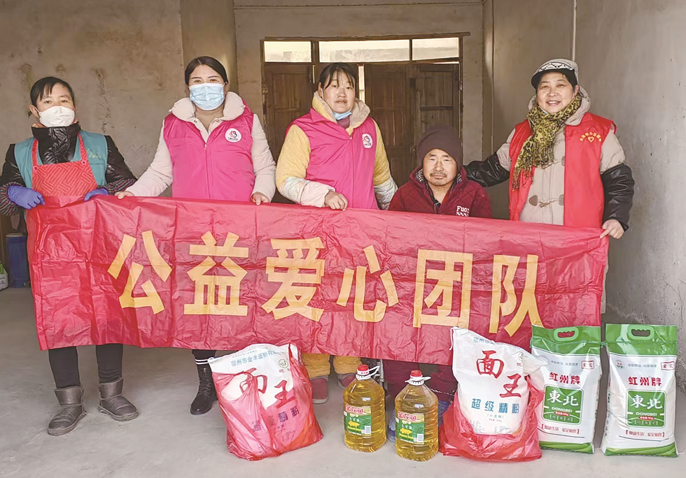 近日,淮上区沫河口镇爱心团队赴团结村慰问困难家庭,并送去面粉、大米和食用油等慰问品。 通讯员 徐建光 摄
