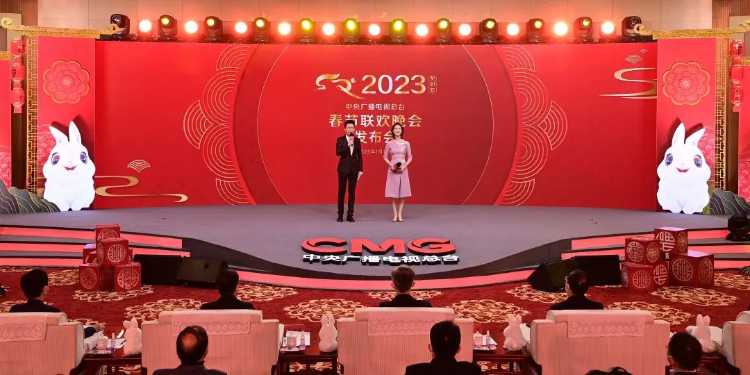 1月16日,中央广播电视总台《2023年春节联欢晚会》举行新闻发布会,介绍多项技术创新亮点,官宣主持人阵容,并首次发布春晚舞美宣传片和吉祥物“兔圆圆”动画短片。