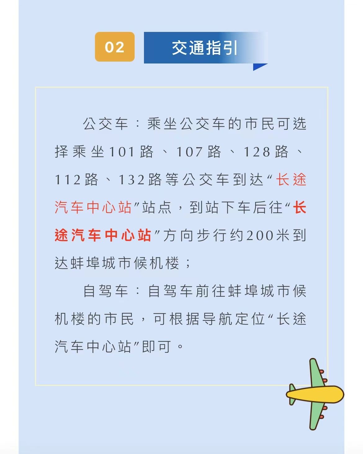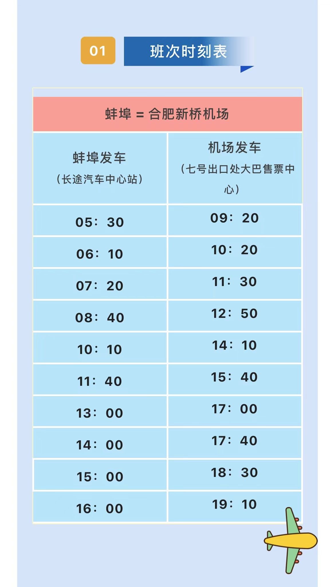 为方便广大旅客乘车出行,1月17日起蚌埠城市候机楼往返合肥新桥机场的机场大巴春运期间每日共发10个班次/日,详细信息请看下表。咨询热线:0552-3033000(春节期间具体发车时间请致电查询)(融媒体记者:李景 编辑:徐捷)