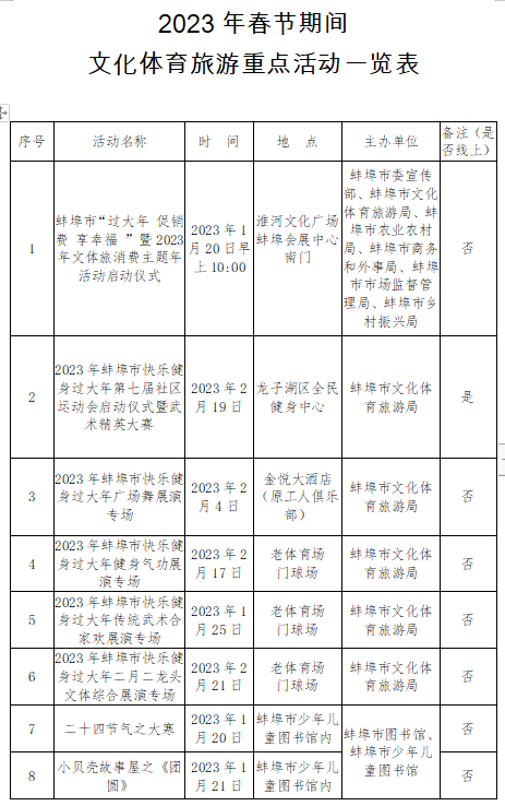 【网络中国节·春节】春节期间,蚌埠文化体育旅游活动来喽!