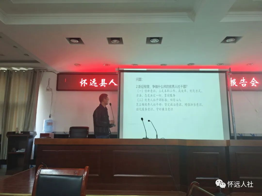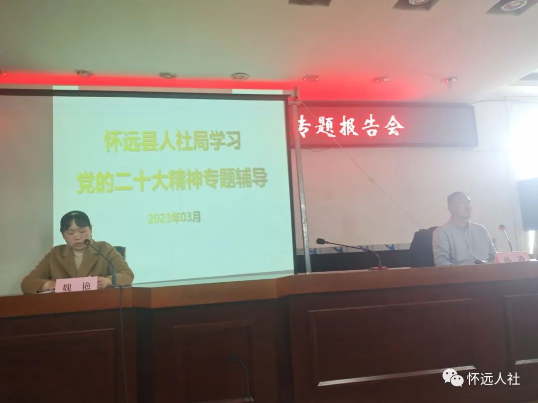 孙涛主任作了题为《学习贯彻党的二十大精神,深刻理解“中国式现代化”》的党课专题辅导,孙主任从深刻理解党的二十大关于“中国式现代化”的表述、“中国式现代化”的内涵、目标、意义以及关于怀远发展的思考做深入浅出的讲授和阐述,针对县人社局提出了要在助力我县创新和扩大产业链增加就业机会促进全县经济社会高质量发展贡献人社力量的建议。