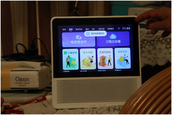 一大早,忙活完家务的赵开立老两口拿起翼家智话与儿子视频通话,流畅的网络和宽大的屏幕让两位老人爱不释手。上河时代社区居民邹汉玉告诉记者“我能清清楚楚的看到他(儿子)在干些什么事,他也能看到我在干什么事情,感到非常温暖”。