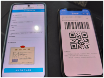 办理机动车业务时,法人或代办人(需法人授权)通过微信小程序向窗口工作人员出示二维码,工作人员扫码成功后,获取到法人主体的电子营业执照文件。