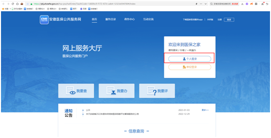 2.转入地正常参保后请个人注册登录“安徽医保公共服务”后点击“个人登录”