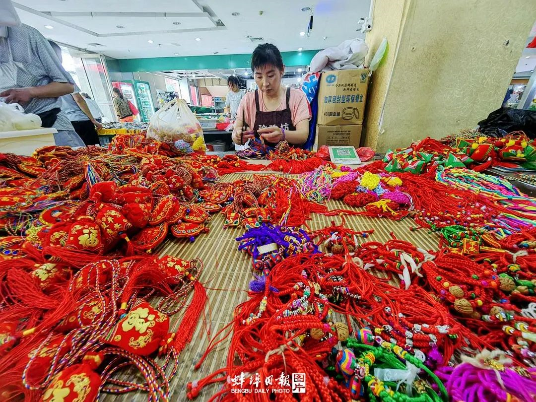 正是这种驱邪避灾的观念,民间产生了夏季卫生习俗。旧时蚌埠城乡人家总会在端午节时在庭院土墙角,喷洒雄黄酒以消毒灭菌。孩子脚、手、脖及颈上拴香包,以芳香气味驱赶蚊蝇。各家门前及妇女、孩子的头上常插艾,避邪驱瘟。农家常采菖蒲、车前子、艾挂屋檐下风干,用于暑天烧开水喝,祛暑解热。端午当日,有的人家捉蟾蜍(俗称癞猴子)将墨块塞入其肚中,风干后取墨块研磨用来治疗胙腮。但据农家传说,此日蟾蜍极难见到,并有“癞猴子躲端午”之说。富裕人家则从端午起吃素。节后,城乡老少男女便更换春装,有“吃罢端午粽,来把棉衣送”的说法。