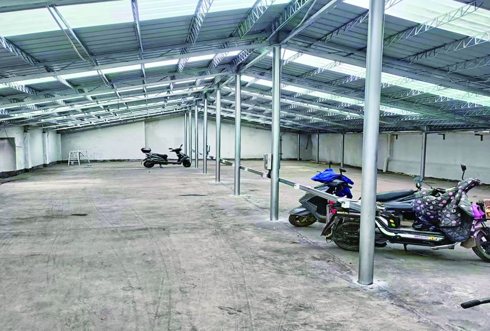 原来,延安路社区车站新村停车棚因年久失修,顶部出现破损,车棚多处漏雨,遇到下雨天气经常是“外面下大雨,棚内下小雨”,严重影响了居民自行车、电动车的存放。有的居民便把电动车、自行车推进楼道停放,进行飞线充电,存在极大的安全隐患。