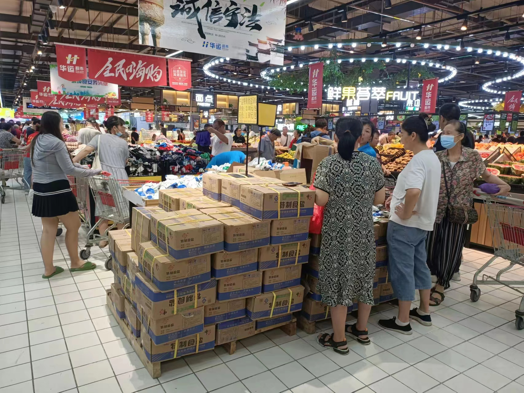 记者在华运超级中心店看到,大量的食用盐正在源源不断补向货架。有一款食用盐甚至还在特价中。华运超市总经理丁高柱说,超市已经开始向市盐业有限公司提出加大供应,零售市场的供应目前完全可以保证,而且绝对不会加价,请市民理性消费。