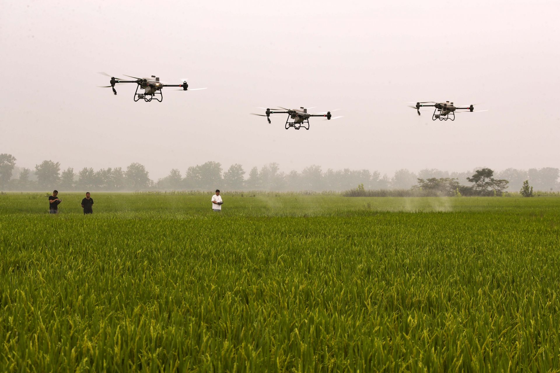 9月5日,安徽省五河县浍南镇年庙村农民利用植保无人机开展水稻病虫害防治“飞防”作业。立秋之后,水稻陆续进入拔节孕穗期,安徽省五河县组织近百名农技专家深入田间地头,指导农户做好水稻病虫害防治工作,为秋粮丰产丰收打下基础。(蚌埠日报社融媒创作人 李向前)