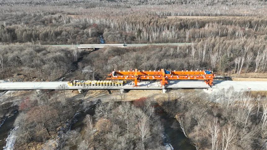 近日,我国在建最北端高铁哈伊高铁铁力至伊春段架梁工程全面完工,为全线铺轨奠定了坚实基础。