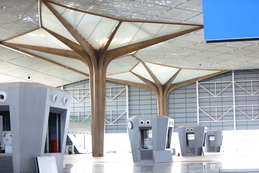 聊城西站站房运用现代建筑设计手法完美展现古城风韵,打造凤凰展翅的建筑形态,寓意高铁给城市发展带来崭新机遇和美好未来。