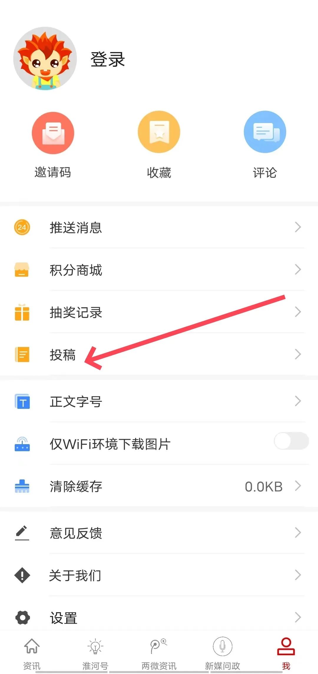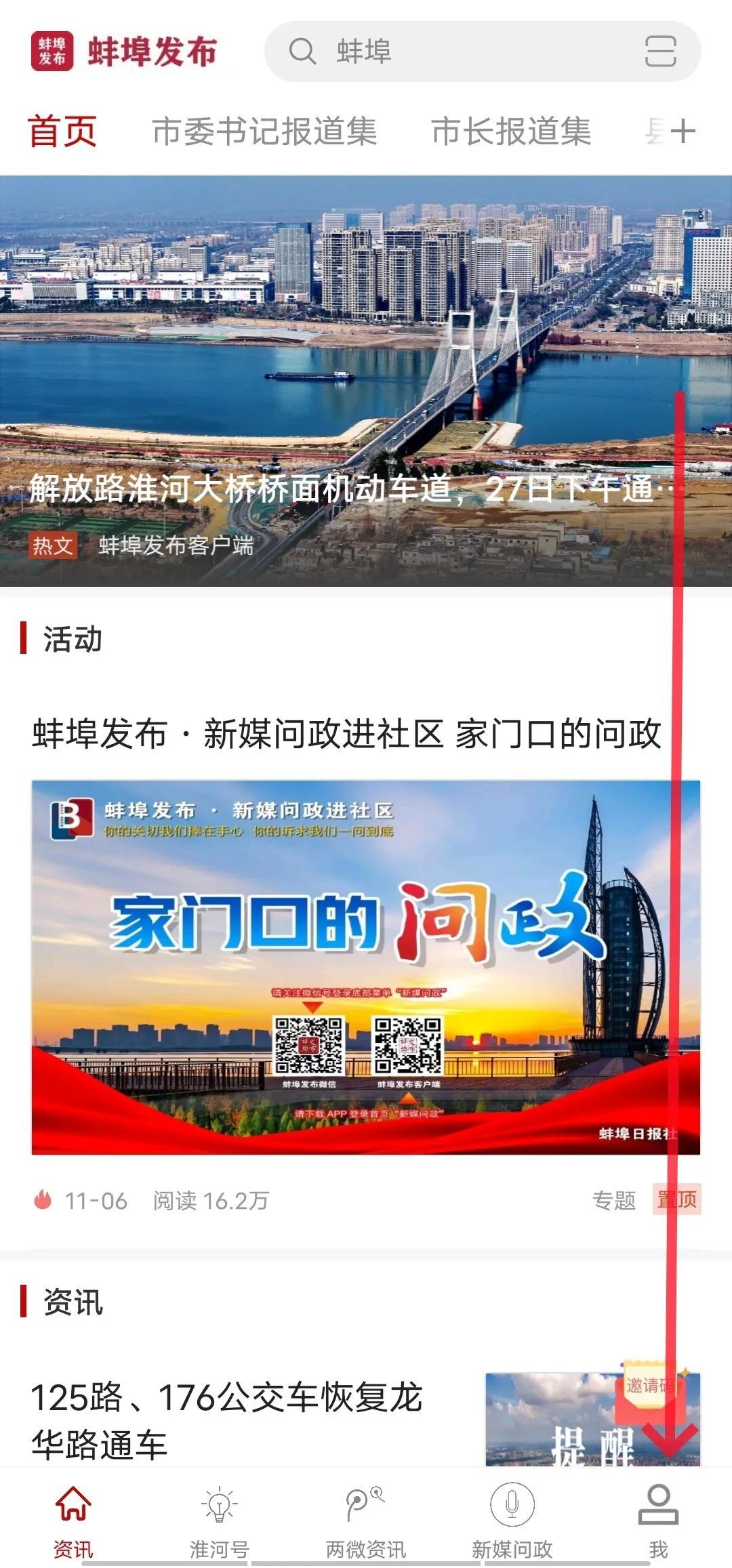 1、请下载蚌埠发布APP,点击右下角“我”,进入“投稿”栏目。
