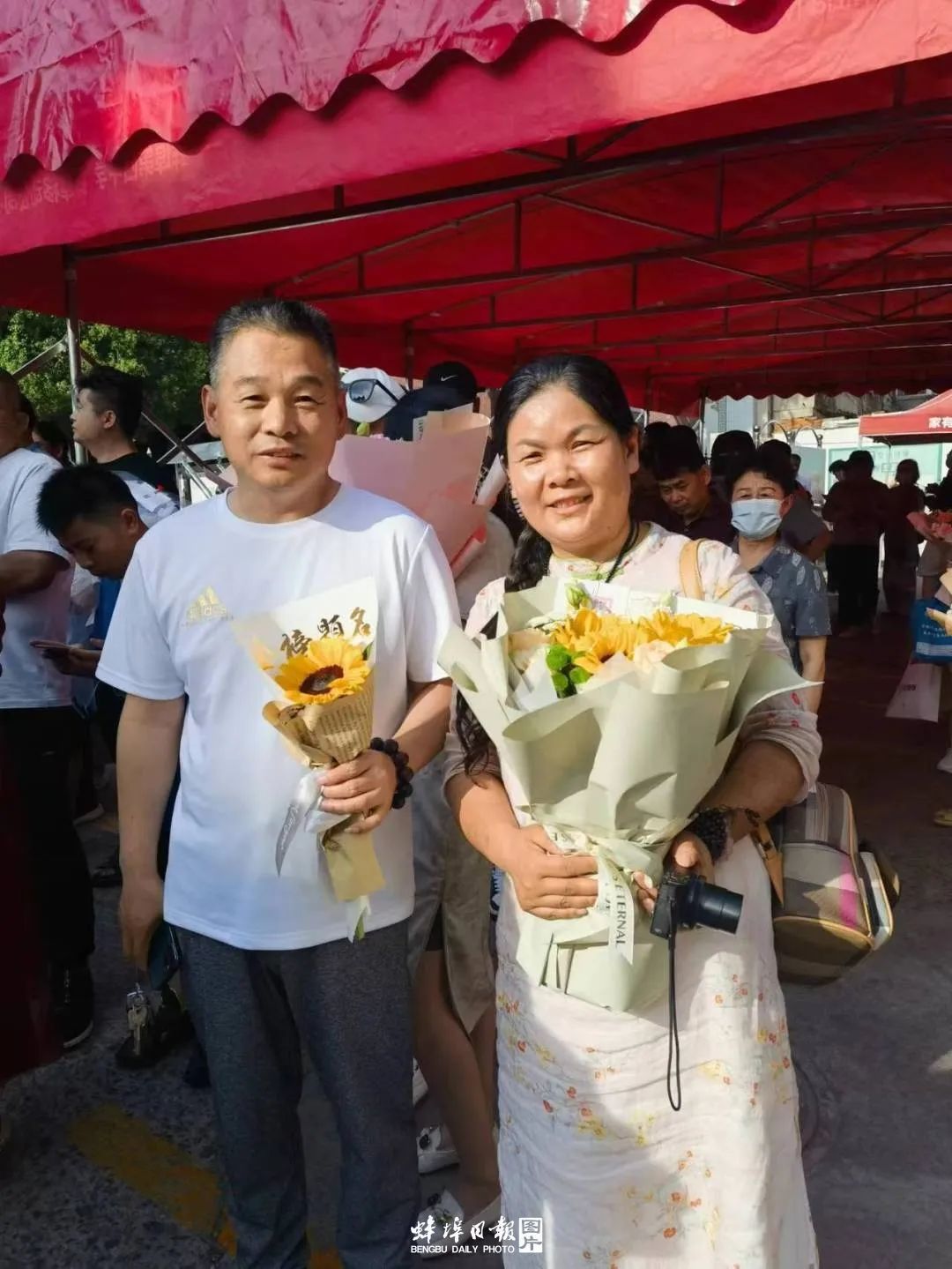 2023年6月8日,蚌埠四中考场外,我和爱人手拿向日葵在等待即将走出考场的儿子。我们的心里百感交集又充满期盼,希望儿子能轻松答题,一举夺魁。网友:邱明燕