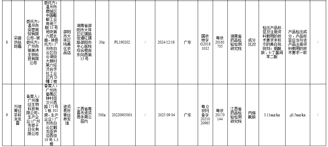 附件:43批次不符合规定化妆品信息