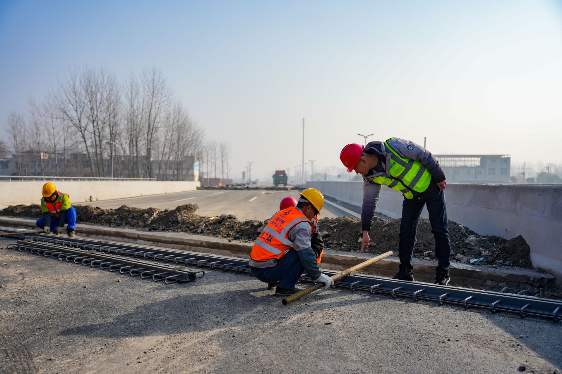 蚌埠发布客户端讯(融媒体记者 尤靖文 通讯员 凌义乐)1月11日,在固镇县G344改建工程现场,工人们正在进行桥梁伸缩缝安装和绿化带种植工作,为项目月底完工通车做最后冲刺。