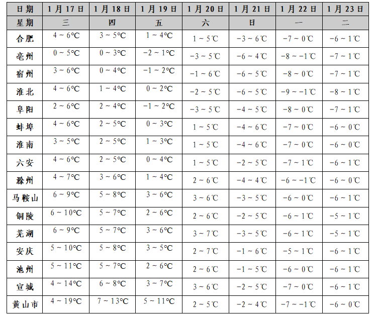 安徽气象台最新预报17日至19日我省有明显降水20日至22日淮河以南部分地区仍有弱雨雪天气