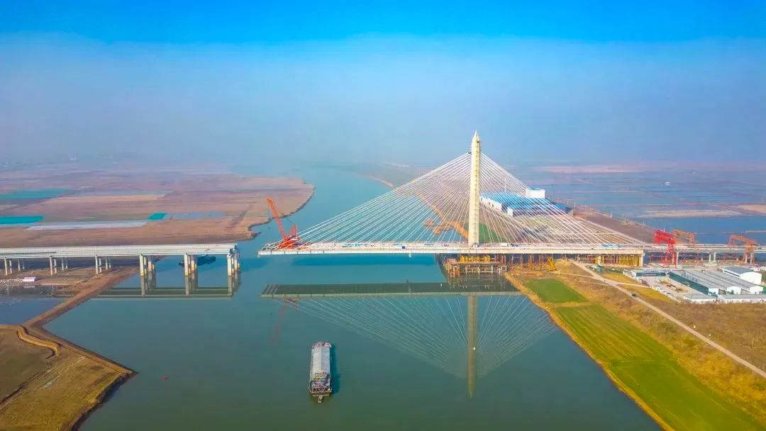 在即将合龙的合周高速寿颍段淮河特大桥主桥施工现场,70余名工人加班加点,开展钢梁架设及拉索施工,争分夺秒向1月底合龙目标冲刺。目前,淮河特大桥主桥钢混组合梁及斜拉索安装完成83%,引桥钢板组合梁桥完成100%,附属工程完成98%,全线路基土方全部完成,路面中下面层进度过半。