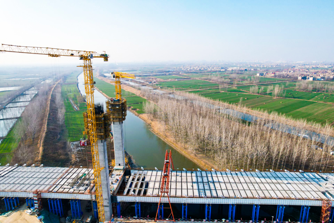 在亳蒙高速涡蒙段涡河2号大桥施工现场,一派繁忙景象。目前,桥梁工程已由下部施工转入上部结构施工阶段。亳蒙高速涡蒙段全长约93公里,关键控制性工程涡河1#大桥桩基全部完成,主桥下部结构完成95%,涡河2#大桥已完成主桥下部结构。