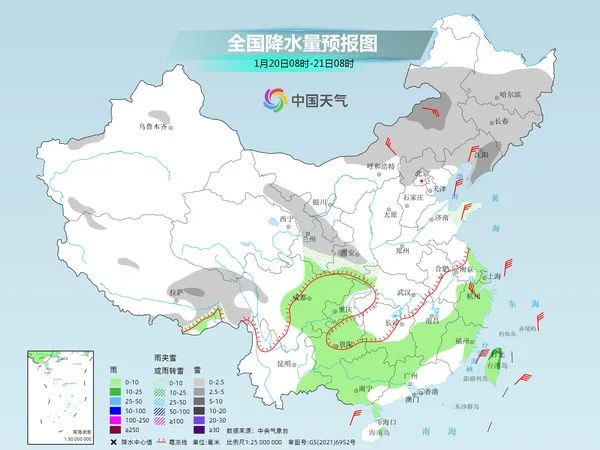 1月20日至23日,2024年首场寒潮天气将影响我国,中东部地区将出现大范围大风降温以及雨雪天气,气温将由之前的偏高状态转为明显偏低。明天,寒潮深入南方后,四川、贵州至江南大部将出现雨雪转换,局地或现大暴雪,需加强防范南方低温雨雪冰冻天气对交通出行等方面的不利影响。