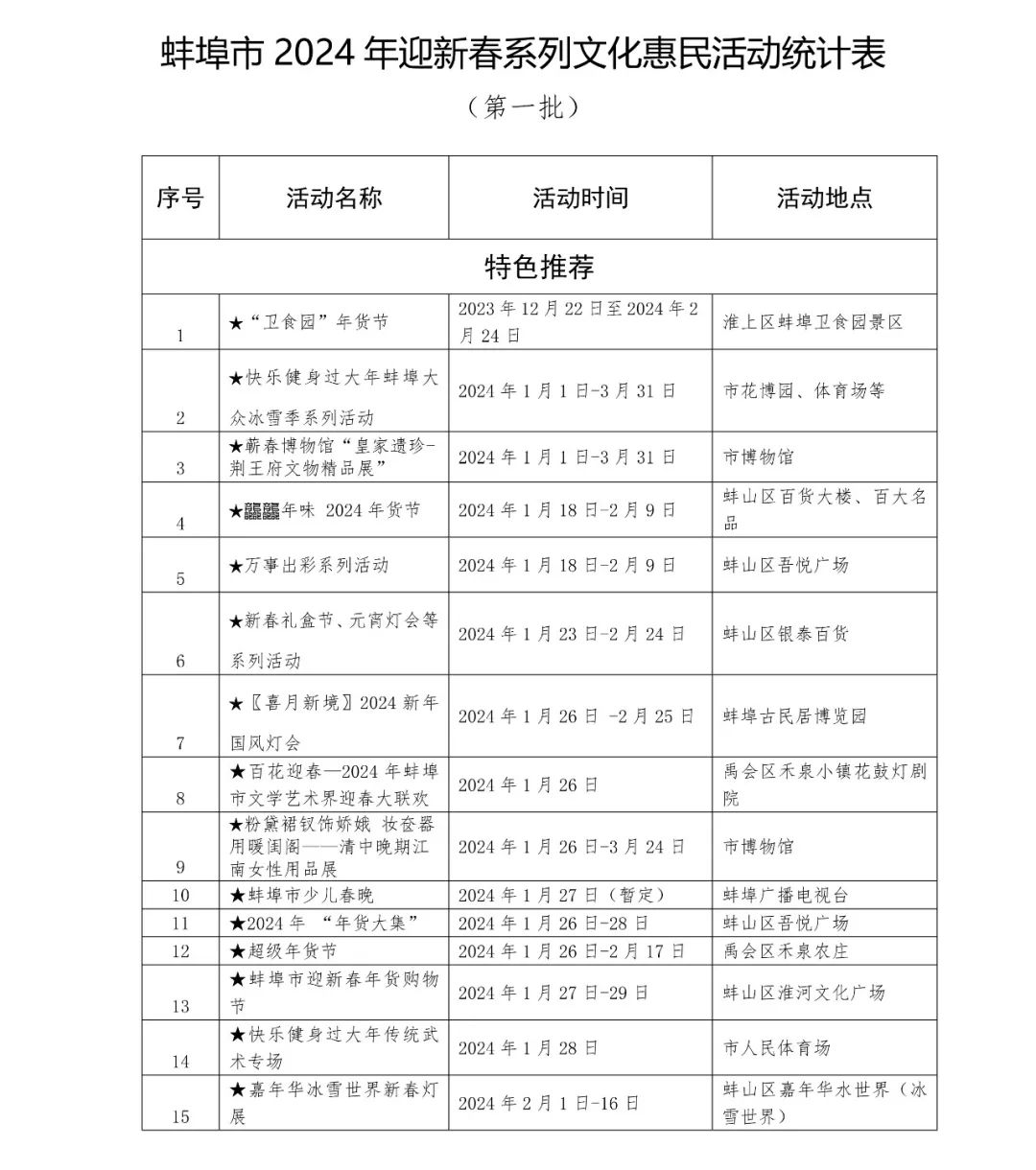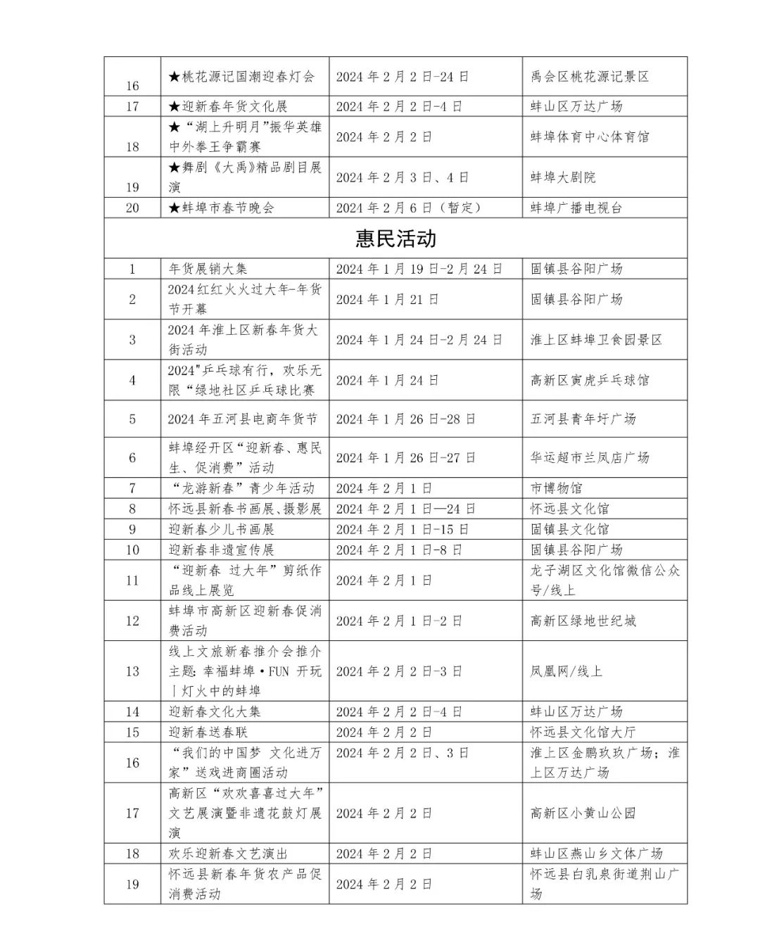 蚌埠市2024年迎新春系列文化惠民活动出炉