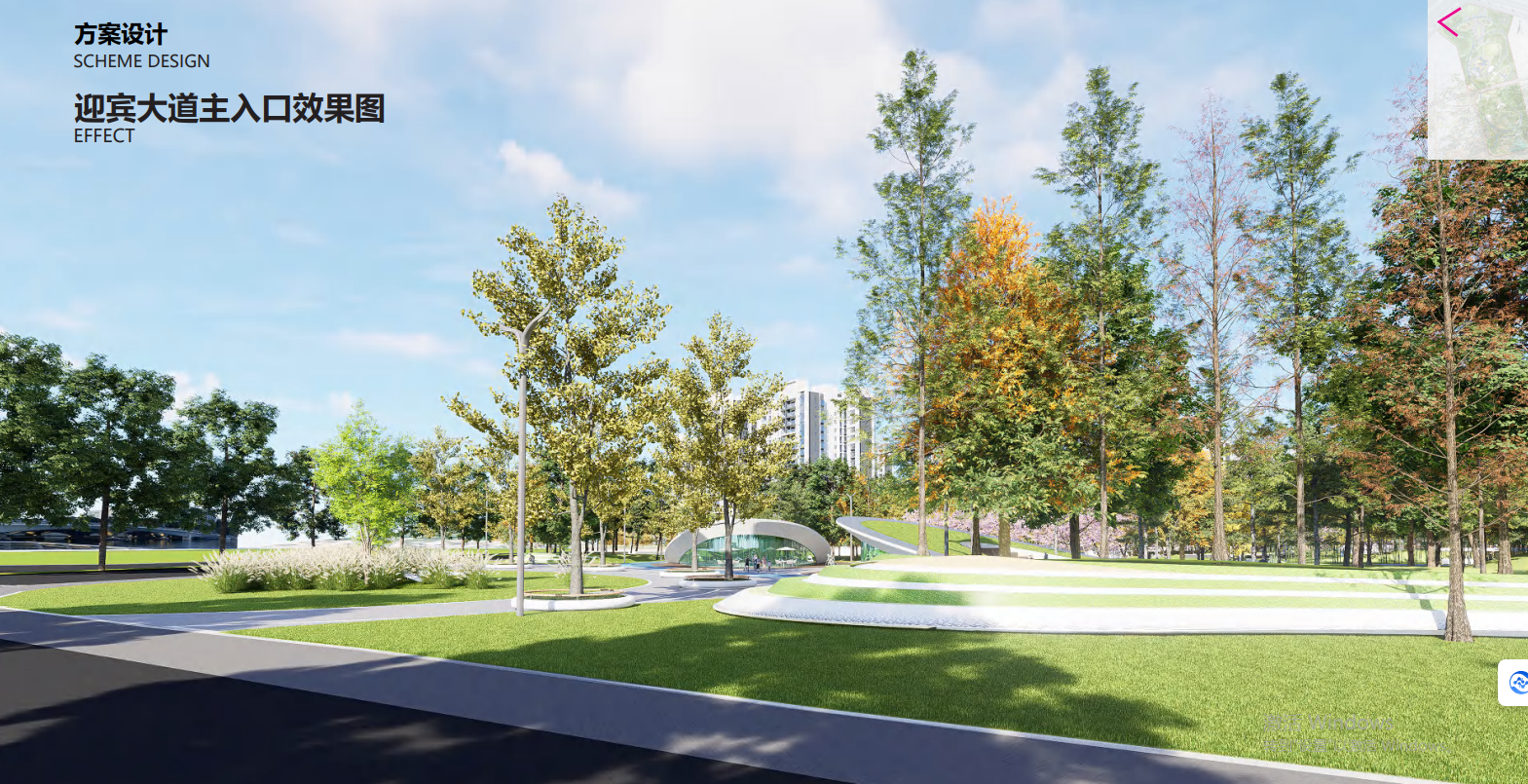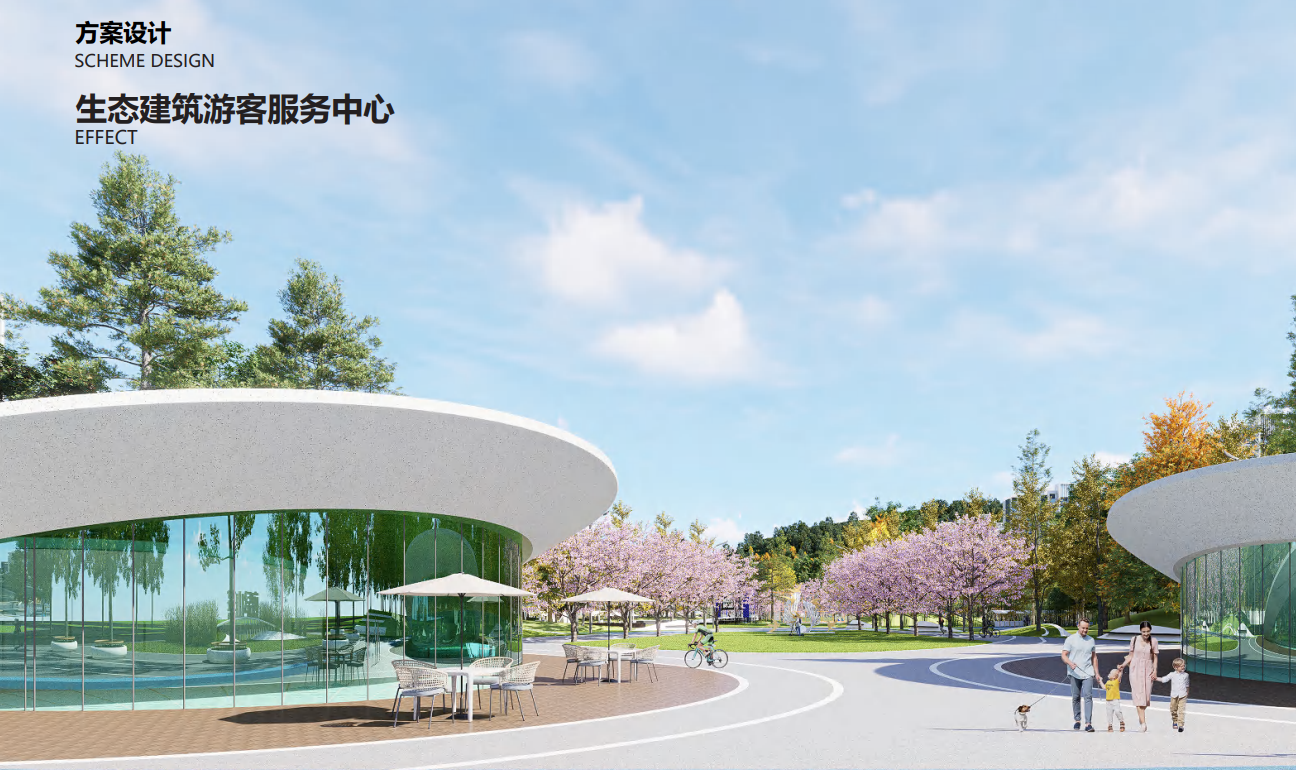 绿廊以“创形象、链通廊、复生态、育文化、营生活”五大理念进行设计,以“燕衔明珠向燕山 彩环绿廊映城南”为主题,意图打造一个“生态的景观空间 + 多样的活动节点”。“燕衔明珠向南山”是将场地生态湿地资源比作珍贵的珍珠,独具匠心,寓意深远。设计方案中还融入燕子的优雅姿态,象征着对自然生态风貌的希望与追求,向南山延伸,表达了对美好未来的向往和追求,呈现了自然与人文的和谐共存。“彩环绿廊映城南”是指将设计多彩的活动及体验空间,打通城市视觉通廊,串联多样的活动节点,打造城南片区绿色通廊门户。