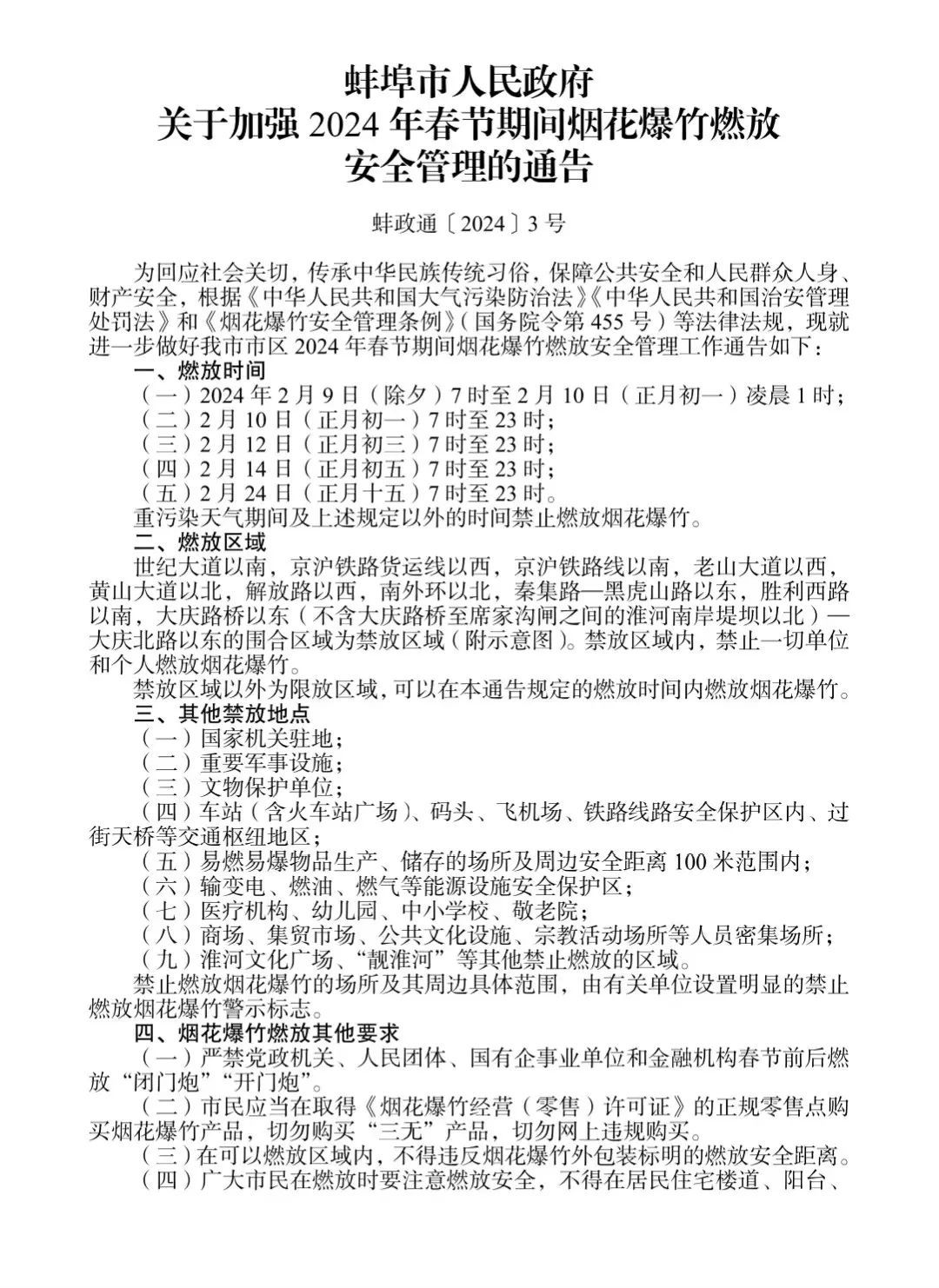 关于加强2024年春节期间烟花爆竹燃放安全管理的通告