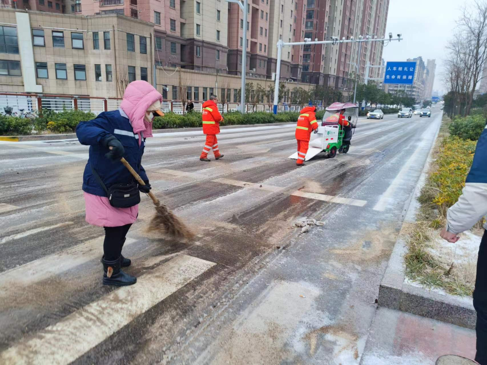 记者从市环卫处了解到,自本轮冻雨天气以来,全市各区环卫部门采取“机械+人工”协同作业模式,不间断对城区道路抛洒融雪剂,同时环卫工人全部在岗,对重点区域、重点路段结冰路面进行清理。截至21日中午,市区已出动环卫人员2888人、各类应急车辆50辆,抛洒融雪剂32.6吨,奋力保障市民平安出行。