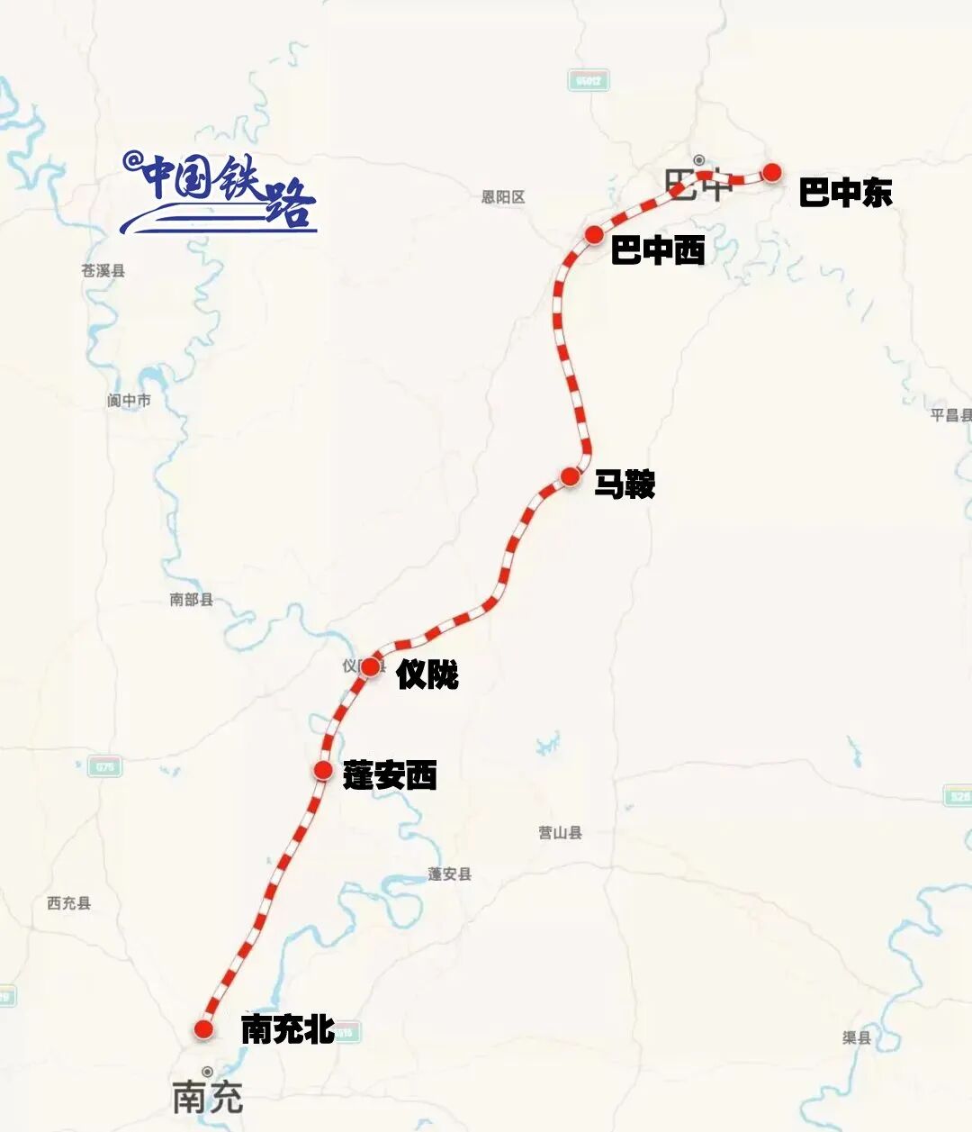 巴南高铁位于四川省东北部,正线设计时速250公里,线路全长约148公里,中间设巴中东、巴中西、马鞍、仪陇、蓬安西、南充北6座车站。