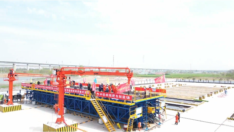 中铁四局八分公司负责安徽省境内铺轨任务及合肥枢纽标段内箱梁制运架任务,企业负责人介绍,肥东制梁场通过安徽省认证投入使用后,该梁场将负责沪宁合高铁合肥枢纽肥东县范围内403孔单线箱梁预制任务。