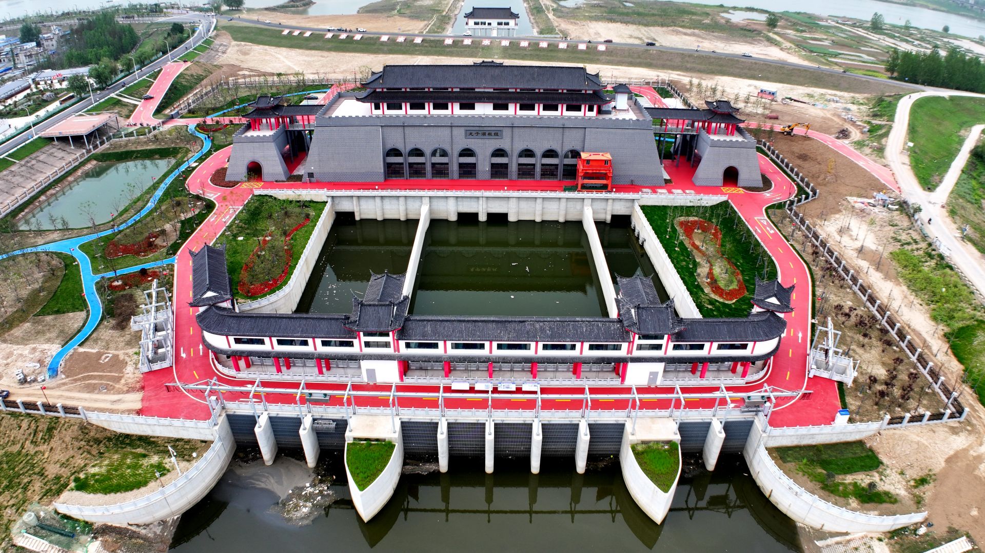 龙子河口综合枢纽布置工程自2022年3月7日开工建设以来,仅仅1年多的时间,经过各参建单位的共同努力,截至目前,金属结构、水机及电气等设备已全部安装完成,复古建筑造型的厂房也已呈现,场区道路、绿化等附属工程也已全部完成,预计今年汛期前可进行抽排功能。
